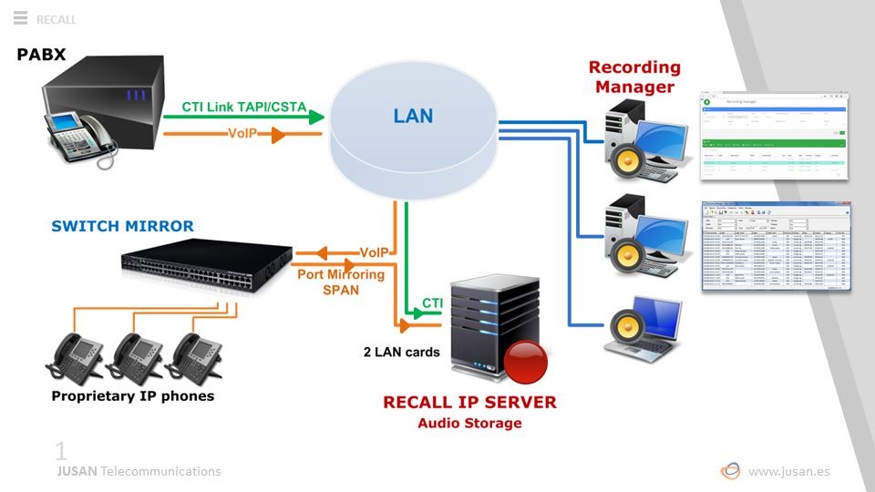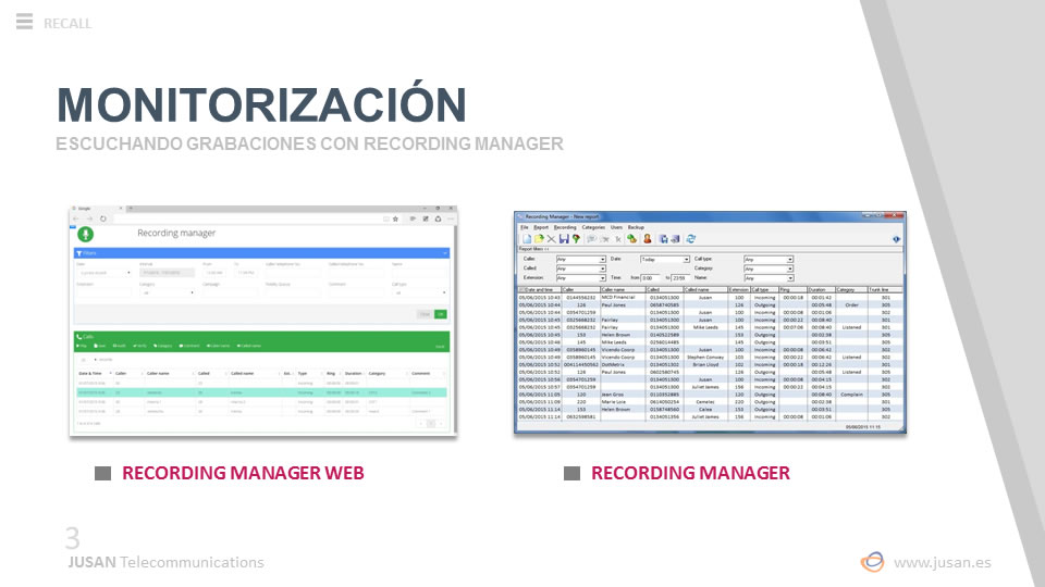 - • Calidad / Auditoría interna:Un sistema de grabación permite monitorizar y mejorar de forma permanente la atención telefónica recibida por sus clientes.